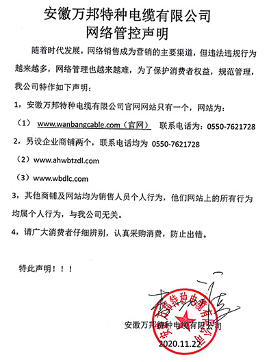 鄭重聲明:安徽萬邦特種電纜有限公司官方網站為:www_wanbangcable_com.ttdingcan.cn,除此之外無任何子網站或合作網站,其余均為假冒偽劣。電話:0550-7621728 13485756353 地 址:安徽省天長市滁州高新技術產業開發區經四路29號